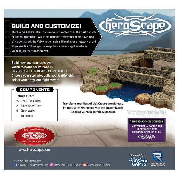 Add speed and strategy to your battlefield maps! Includes road terrain tiles that boost movement and short walls that attach to create custom bridges–perfect for controlling the flow of battle and building epic new maps. This terrain expansion is fully compatible with all Heroscape terrain. Mix and match this expansion with any terrain for seamless integration into your collection.