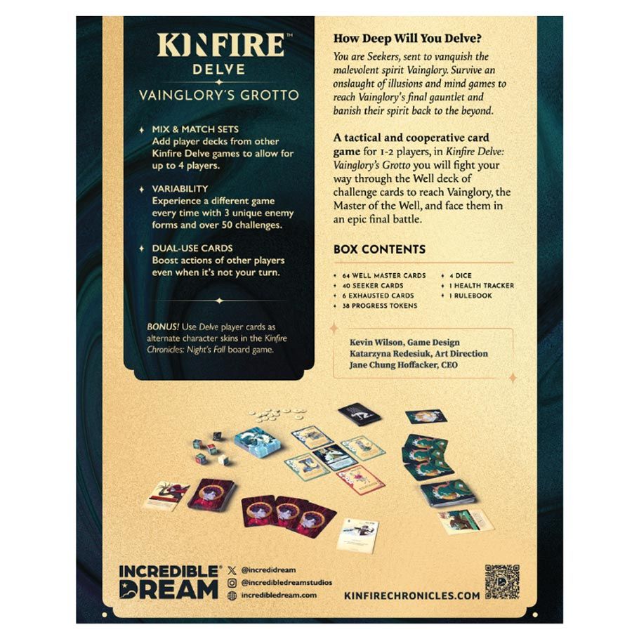 "Kinfire Delve" is a replayable, tactical card game with stunning illustrations, press-your-luck mechanics, and premium finishes that offers an engaging solo or co-op experience at an unbeatable value. Highly rated by the community and endorsed with the Dice Tower Seal of Excellence, this captivating game provides endless fun and opportunities to expand your adventures. Its beautiful craftsmanship, flexible player count, and mix-and-match features make it a standout addition to shelf.