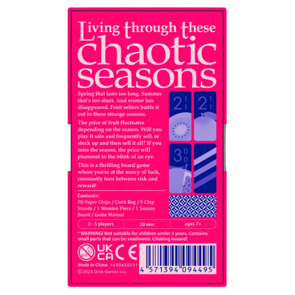 Win Before Winter Returns: The game races towards a finish as players attempt to outmaneuver each other before the season deck cycles twice. Quick thinking and bold moves are rewarded in this thrilling race to become the most prosperous fruit trader before the seasons run out.