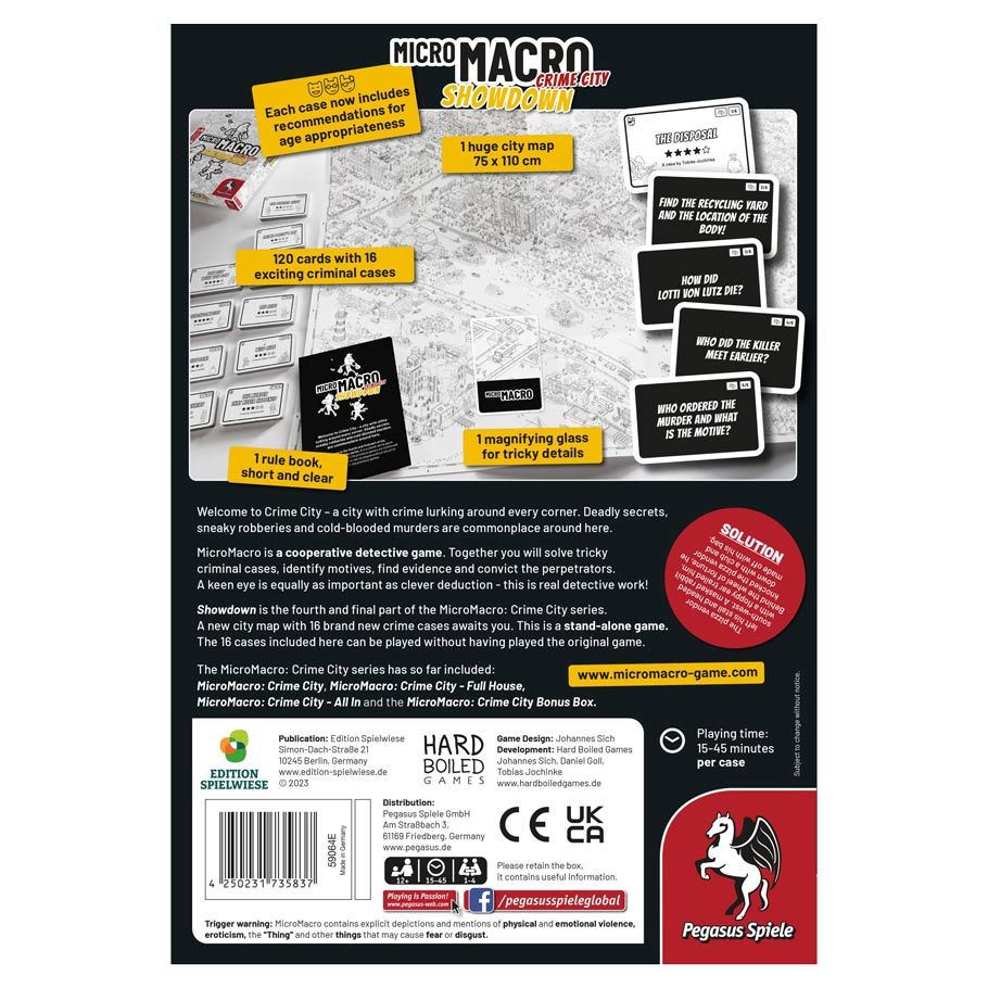 Showdown is the fourth and final part of the MicroMacro: Crime City series. A new city map with brand new criminal cases awaits you. It is a standalone game. The 16 cases contained here can be played without knowledge of the first parts.