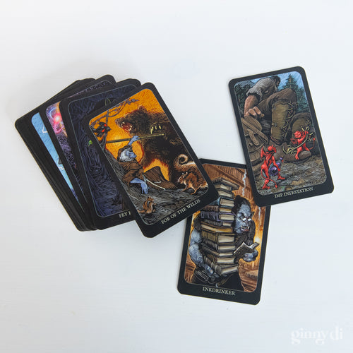 Conceived by tabletop RPG expert Ginny Di and featuring 20 boon and 20 bane cards, all stunningly illustrated by Tim Foley, this deck will help you advance player goals or hurl them (and your story) in an entirely different direction. Upon drawing a bane card, for example, a character might suffer a curse that threatens to strangle them the more active they are. However, pulling a boon could very well bestow a blessing from a higher power, such as a pair of guardian wolves that travel with the character wherever they go. The exact composition of the deck is up to the GM. The boons are a great temptation—but drawing a bane could bring about a crippling result. Players will need to weigh the odds every time.