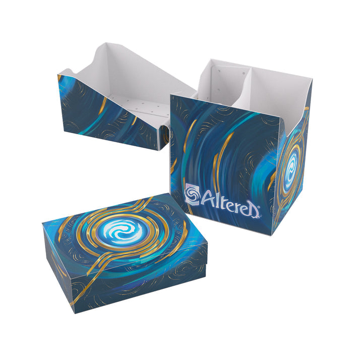 The All-IN-ONE solution with a new design from set 3! The Altered Expedition Soft Box is the budget-friendly all-in-one solution for players of TCG. This full color printed and officially licensed deck box is packed with ingenious features. It protects a full double-sleeved deck of cards and includes an innovative token box! This token box has a smart click-lock mechanism to keep all tokens safely stored - even while pulling it out. Once opened, the lid of the box stays upright for convenient access during gameplay. The Expedition Soft Box is equipped with Gamegenic's very own Cobra Neck-Technology: The lid can be opened more than 180° for easy access. Additionally, it comes with a self-locking lid and write-on-strip. The separator inside ensures that the deck stays in place, even when the token box is removed. The Altered Expedition Soft Box is a must-have for all Altered TCG players.