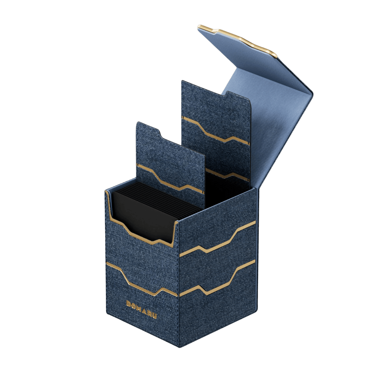 The DOMARU Armory Collection is our latest deck box line, built for strength, durability, and a commanding presence at the table. Featuring refined metallic details, a rugged textured exterior, and strong magnetic closures, each Armory box delivers uncompromising protection for serious play. Top Loading. Fits 100 double-sleeved cards. Includes 2 leather dividers. Strong Magnets. Sturdy textured leather materials and metallic details.
