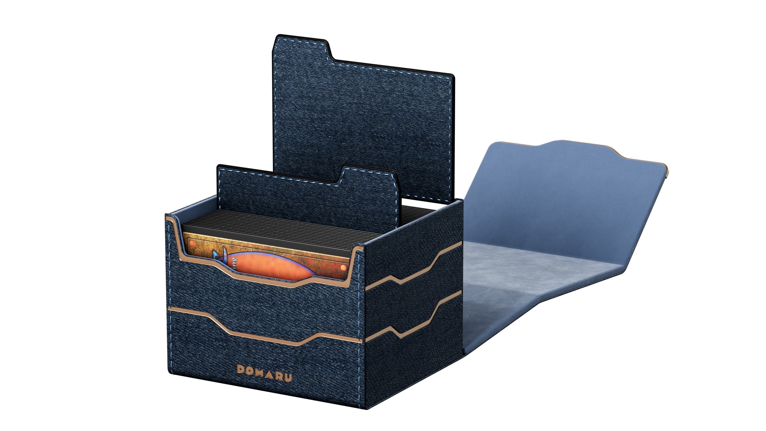 The DOMARU Armory Collection is our latest deck box line, built for strength, durability, and a commanding presence at the table. Featuring refined metallic details, a rugged textured exterior, and strong magnetic closures, each Armory box delivers uncompromising protection for serious play. Side Loading. Fits 100 double-sleeved cards. Includes 2 leather dividers. Strong Magnets. Sturdy textured leather materials and metallic details.