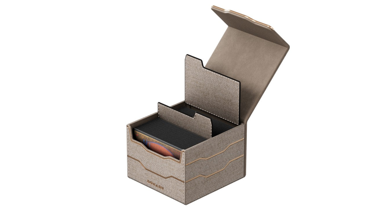 The DOMARU Armory Collection is our latest deck box line, built for strength, durability, and a commanding presence at the table. Featuring refined metallic details, a rugged textured exterior, and strong magnetic closures, each Armory box delivers uncompromising protection for serious play. With included leather dividers and reinforced construction throughout, the Armory Collection is designed to suit a wide range of formats and player preferences. Fortify your deck. Built to endure. Fits 133 double-sleeved or 100 triple-sleeved cards. Includes 2 leather dividers. Side loading. Sturdy textured leather material and metallic details. Strong Magnets.