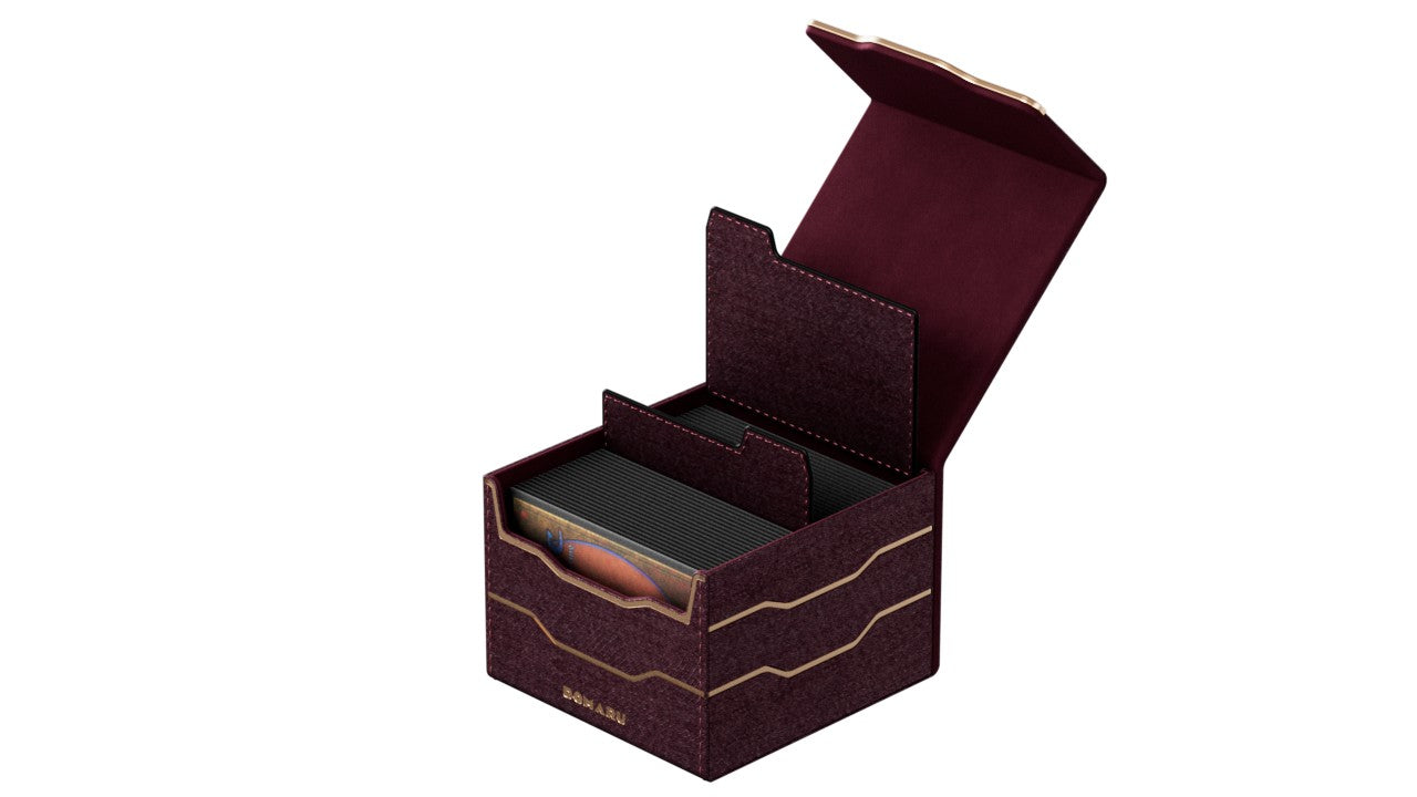 The DOMARU Armory Collection is our latest deck box line, built for strength, durability, and a commanding presence at the table. Featuring refined metallic details, a rugged textured exterior, and strong magnetic closures, each Armory box delivers uncompromising protection for serious play. With included leather dividers and reinforced construction throughout, the Armory Collection is designed to suit a wide range of formats and player preferences. Fortify your deck. Built to endure. Fits 133 double-sleeved or 100 triple-sleeved cards. Includes 2 leather dividers. Side loading. Sturdy textured leather material and metallic details. Strong Magnets.