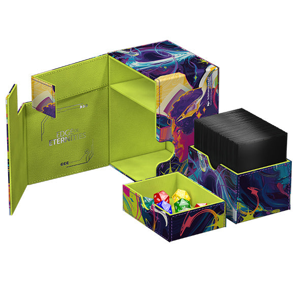 The Flip'n'Tray 133+ Xenoskin is a high-quality TCG deck box that offers premium card protection thanks to its resistant Xenoskin material, microfiber inner lining, and strong magnetic closure. The deck box has an integrated and removable accessory tray for dice that can be accessed independently and is printed in full color with officially licensed artworks from Magic: The Gathering's upcoming set "Edge of Eternities". The Flip'n'Tray 133+ Xenoskin is optimized to hold 133 double-sleeved or 160 single-sleeved cards in Ultimate Guard sleeves.7