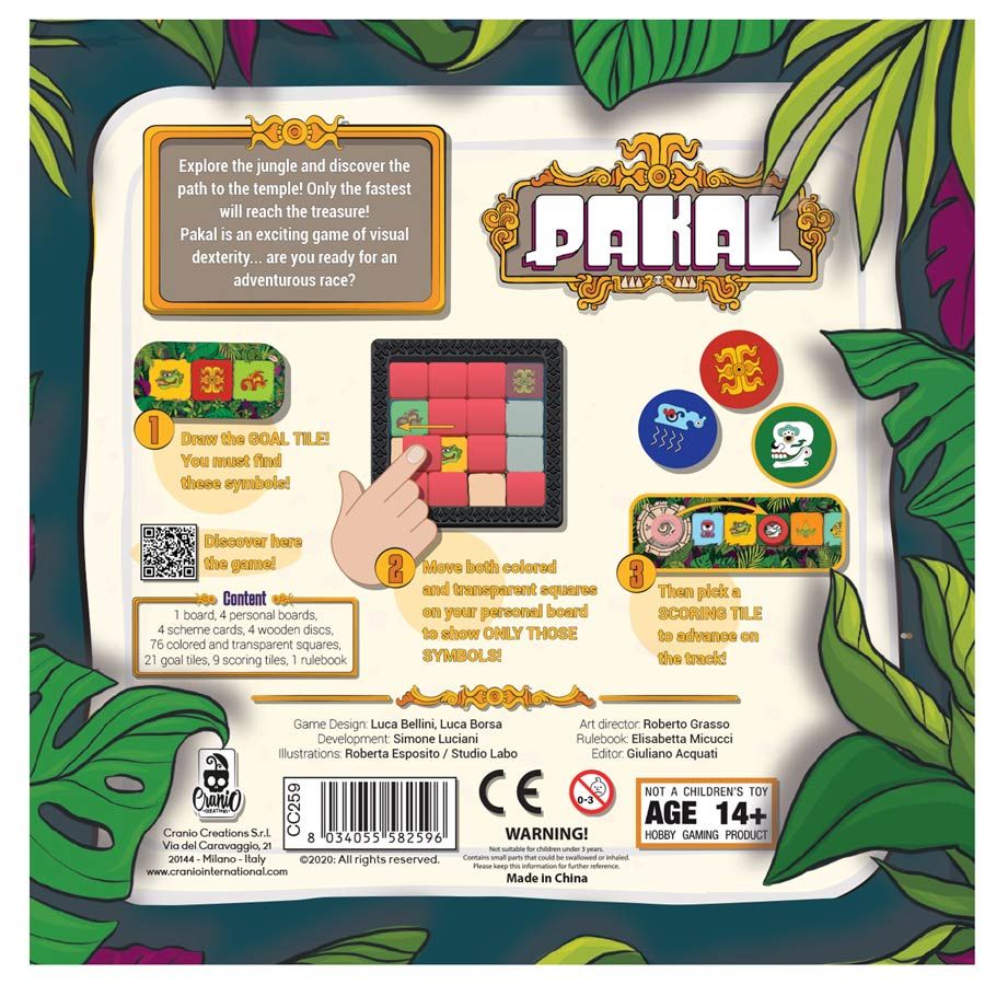 Pakal is a real-time sliding-puzzle game in which each player has a 4x4 grid filled with 15 blocks, some of which have a solid color on them and some of which are clear.