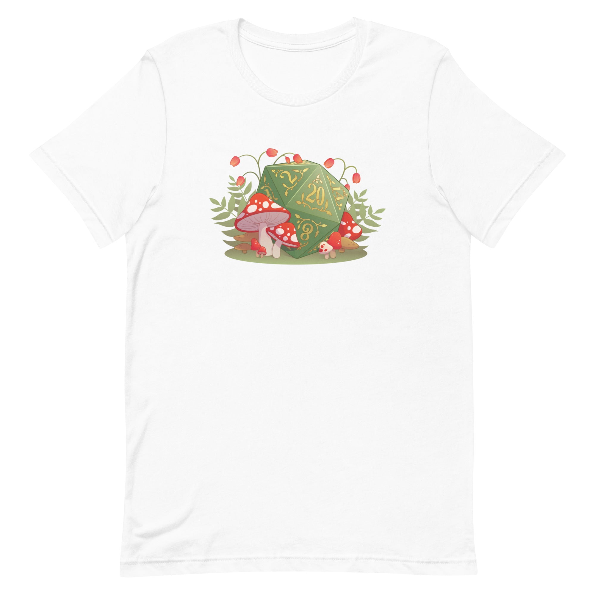 A cozy D20 nestled amongst the forest fungi. Cottagecore, much?
