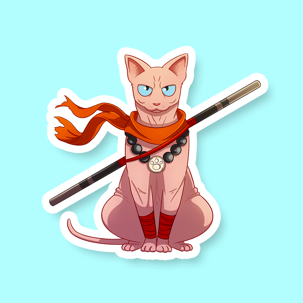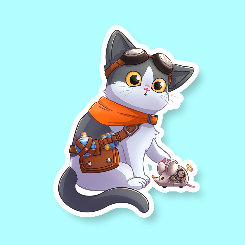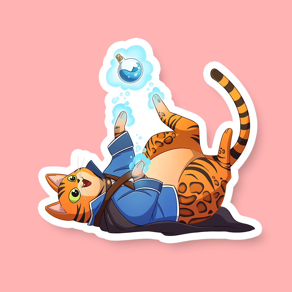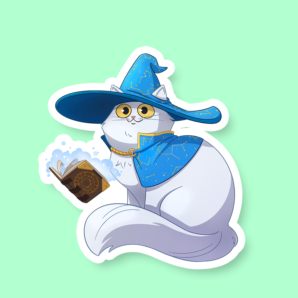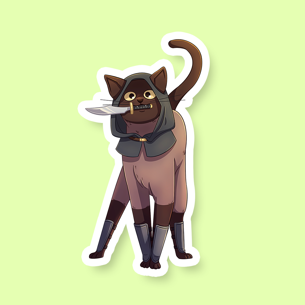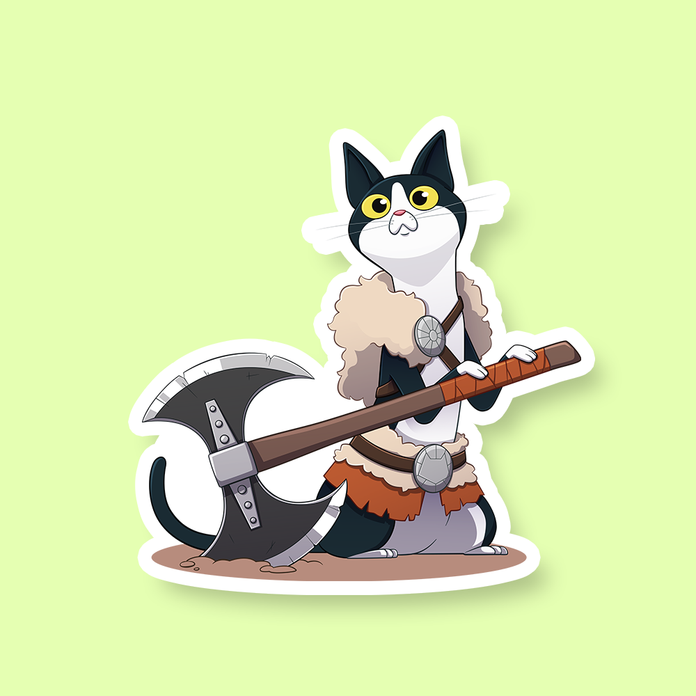 D&D Cat Sticker Pack - Colorful die-cut stickers featuring cats dressed as fantasy RPG characters like wizards, warriors, and rogues.