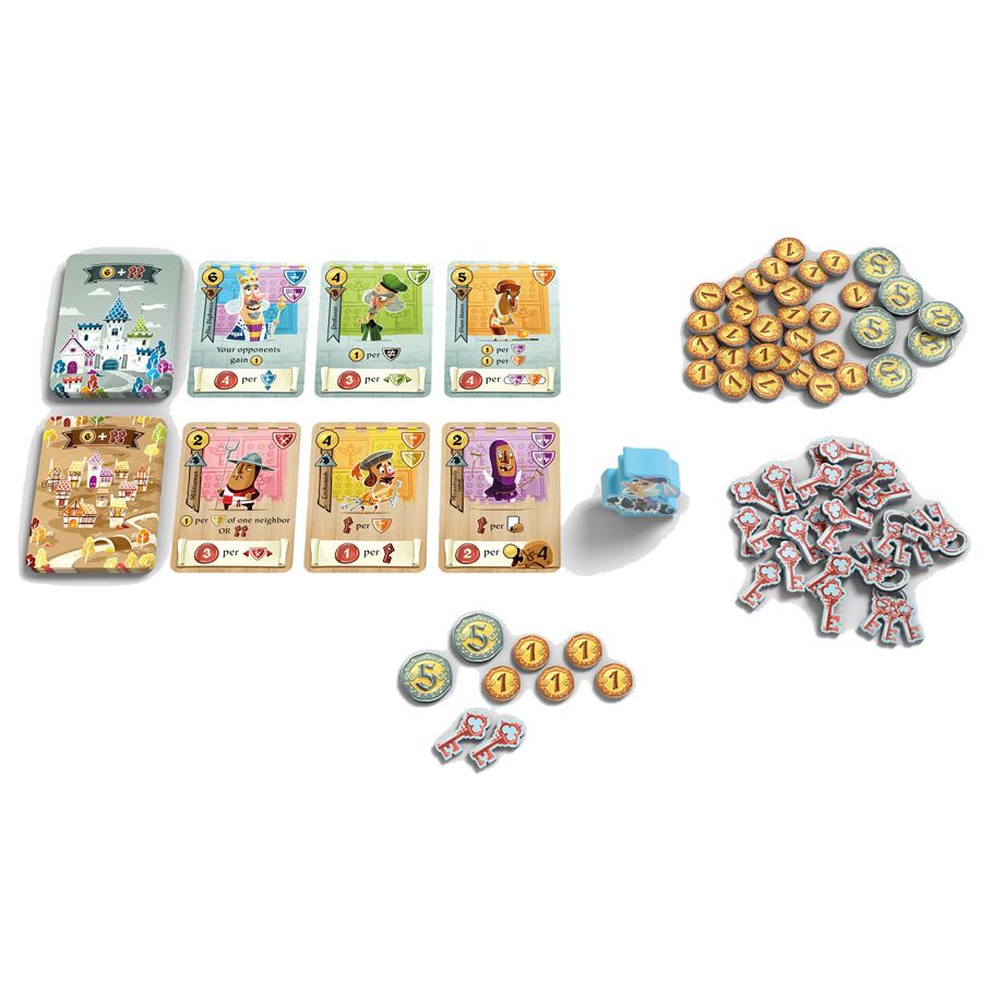 EASY-TO-LEARN, QUICK TO PLAY: With clear symbology and a helpful game aid, Castle Combo is perfect for family game nights or competitive sessions with friends. Playable in about 20-30 minutes. Ages 8+ 2-5 players 20-30 minute play time Contents: 78 cards 1 wooden messenger pawn 96 tokens 1 game aid 1 scoring pad 1 rulebook