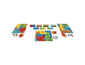 Pyramido is a tile-placement game in which each stage of the pyramid creates connections between them. Players take turns choosing from the available dominoes to create their pyramid. To maximize their points, players must match the jewel icons on the dominoes and place their markers of the same colors to activate the scoring areas. Each choice of domino and its positioning has a significant impact since the previous stages influence the score throughout the game.