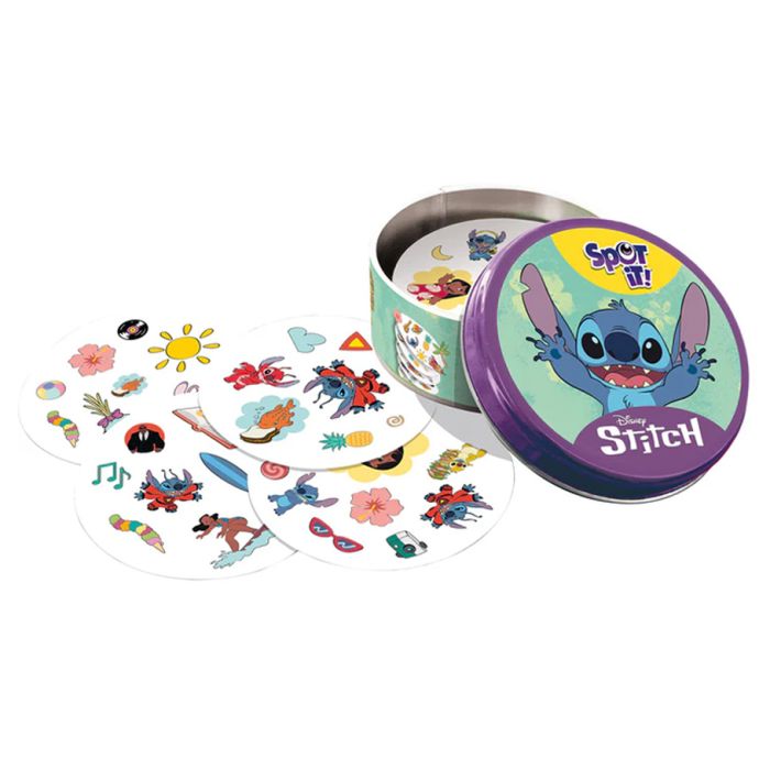 DISNEY STITCH THEME: Dive into fun with the Spot It! Disney Stitch edition, featuring delightful Stitch-themed artwork on every card. Perfect for Disney fans and Stitch lovers of all ages.