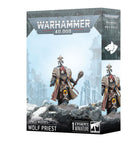 Wolf Priests are elder sages who tend to the spiritual and physical well‑being of their battle‑brothers. Clad in black, bedecked with shamanistic totems and wearing macabre wolf‑skull helms, they are terrifying to behold.
