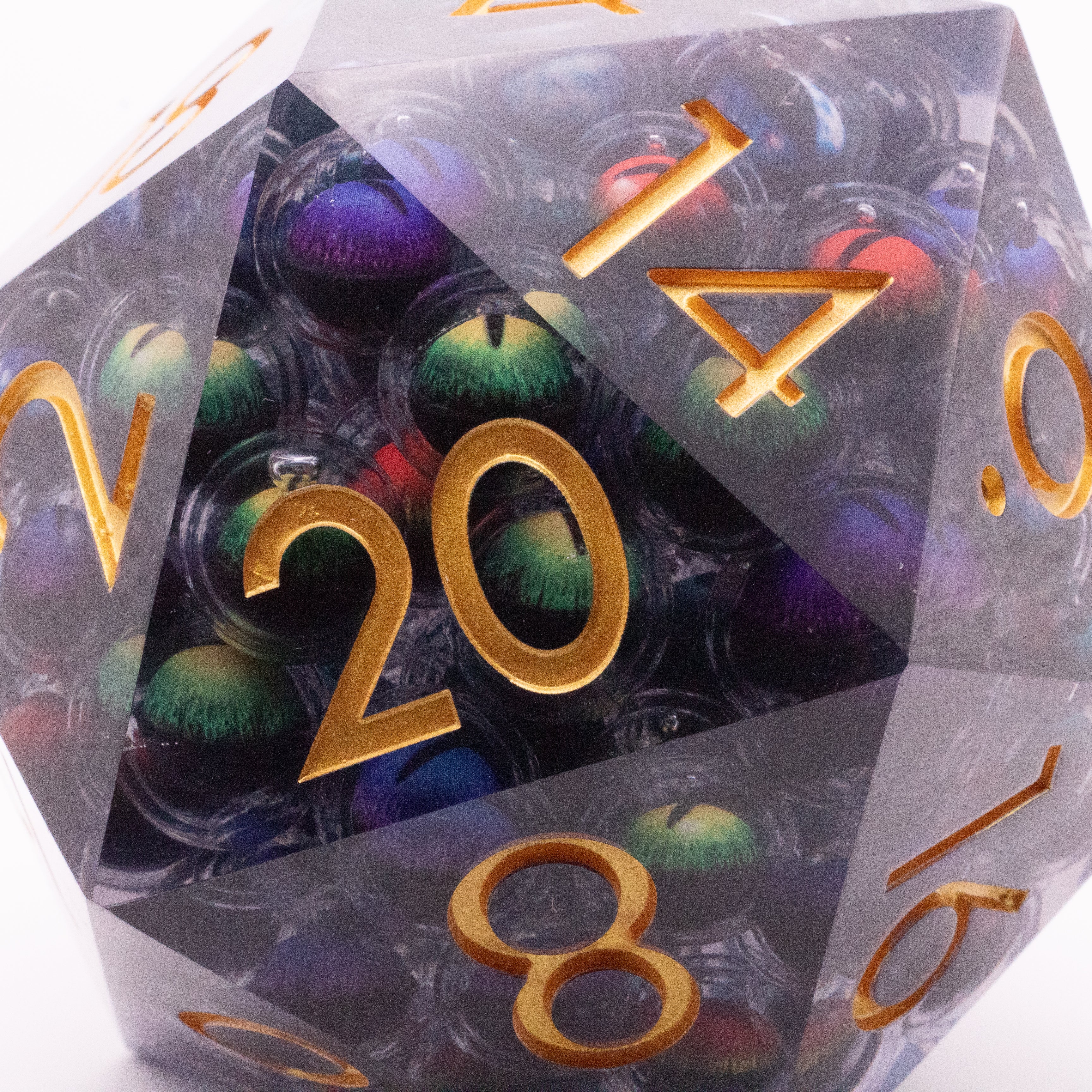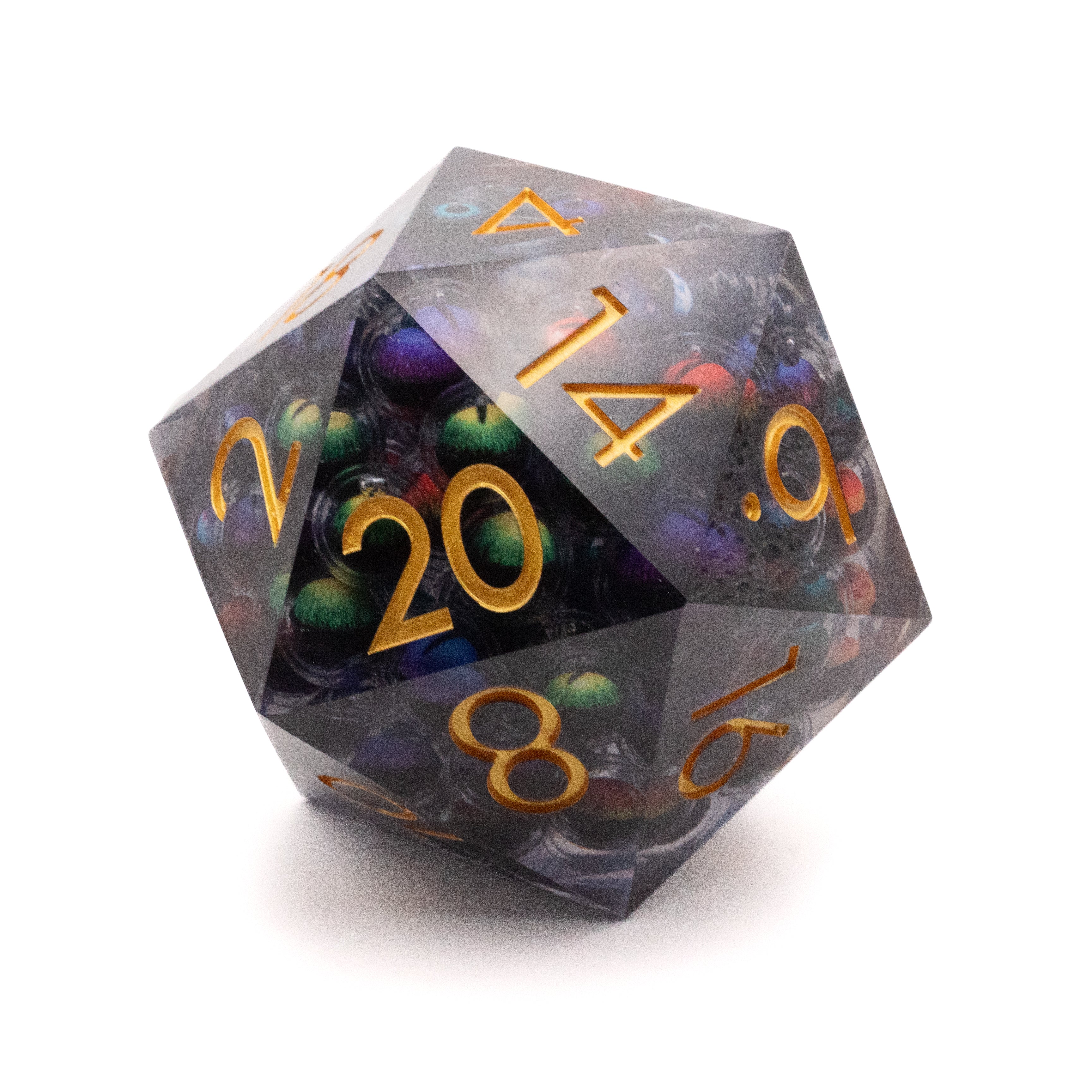 These oversized D20s contain a myriad of floating eyeballs that always point up, giving the illusion of life (or unlife?)