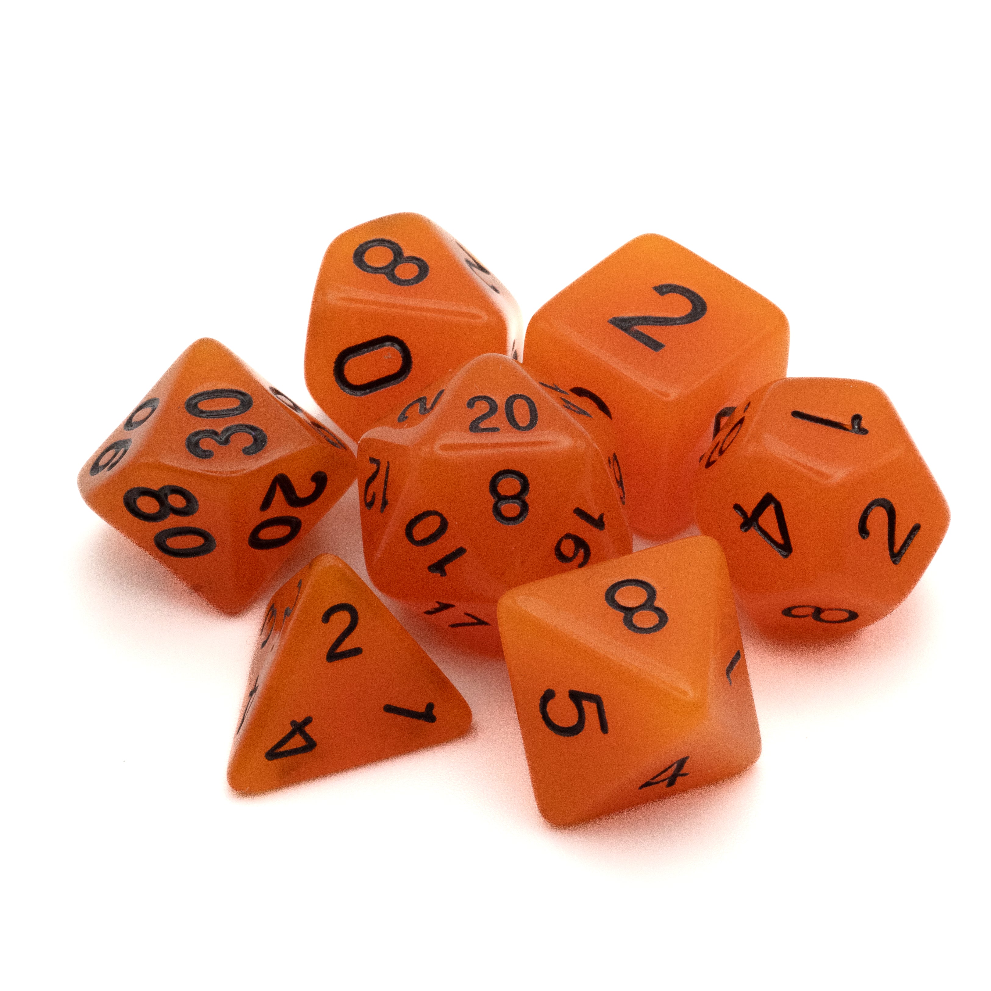 Ignite your game nights with the Emberlight series of dice. The Emberlight Orange Dice Set features an orange hue that glows when the lights go out. Perfectly suited for role-playing games like Dungeons & Dragons or pathfinder.