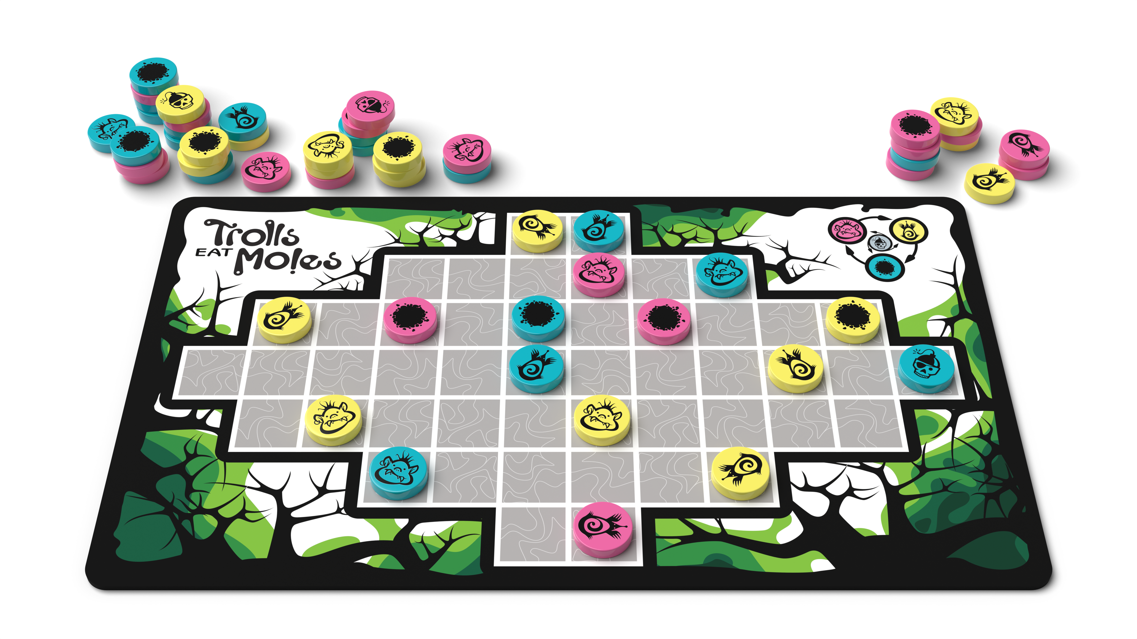 Trolls eat moles, moles dig holes, and holes bury trolls. This game uses the ‘Rock-Paper-Scissors’ concept and made it into a board game. This game requires strategy, diplomatic maneuvering, and a little bit of luck.