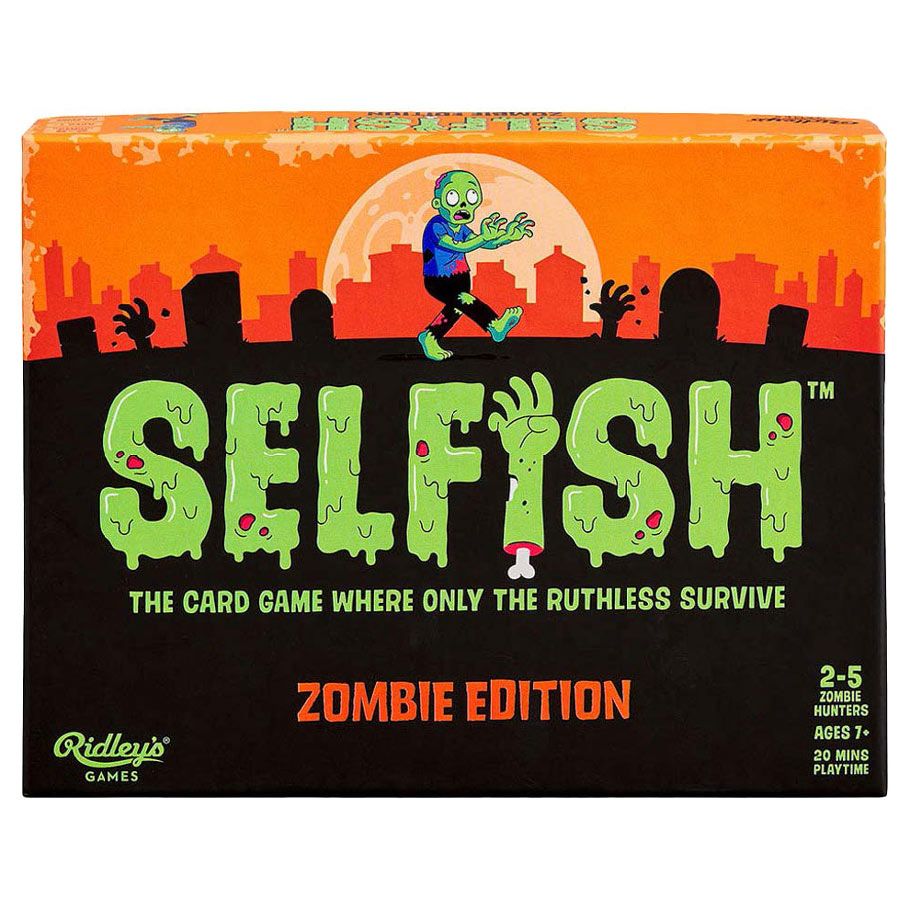 Totally selfish behaviour and utter ruthlessness will be needed to stay alive in this Selfish: Zombie Edition card game. Only one person can survive the zombie apocalypse and get to the safety of the rescue helicopter! Use the remaining survival supplies to advance through a wasteland overrun with the undead, battling against broken ankles, roving bandits and most dangerous of all, each other, to win! Gameplay continues even after you've turned into a flesh-eating zombie, where you'll use your turns to terrorise and prevent your fellow players from winning the game!