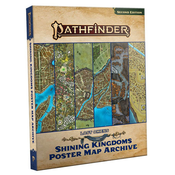 Presented in a durable box for easy storage and retrieval, the Shining Kingdoms Poster Map Archive charts the path to endless adventures in the Shining Kingdoms or in any fantasy RPG campaign!