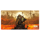 Unleash the power of DOOM on your battlefield with this extended playmat, featuring striking artwork of the legendary Doom Slayer in his relentless fight against the forces of Hell. Each playmat is crafted with a soft fabric top to reduce damage to your cards, ensuring a smooth, protective surface for gameplay. The non-slip rubber backing keeps the playmat securely in place, preventing any shifting during use. With dimensions of 32.5in. x 14.5 in., this playmat offers plenty of space for your gameplay area. In addition to being an essential accessory for DOOM fans, this playmat doubles as an excellent oversized mousepad for home or office, showcasing the Doom Slayer's might while providing a smooth surface for your mouse or keyboard. Perfect for both collectors and players, this playmat is the ultimate way to bring the dark, intense world of DOOM to your gaming table