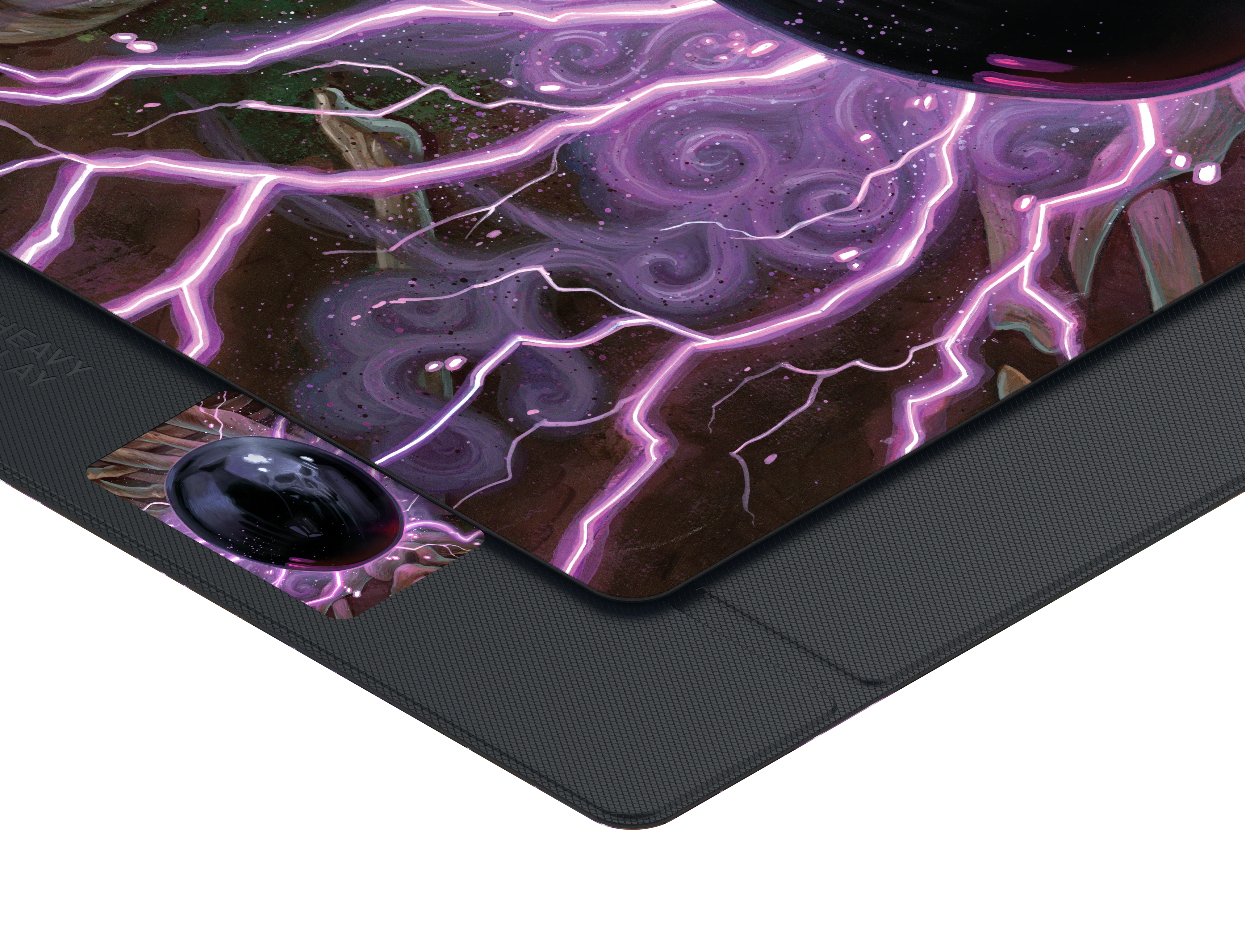 Our revolutionary playmat now has stunning original artwork from Chris Seaman! No more rolling or tubes. Quickly fold flat the ETB Playmat and slide it into a 15" laptop compartment. Smooth polyester play surface, cushioned EVA core, and anti-slip PU exterior. EquipMAG System: Attach Dice / Bundle Decks //Connect Playmat. Connect your deckbox and dicebox to the ETB Playmat to make moving between tournament rounds faster and more secure.