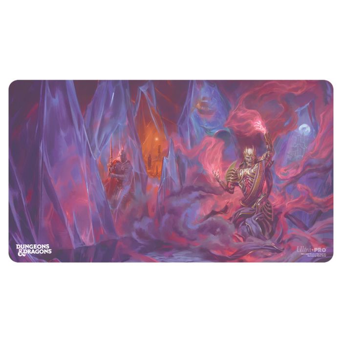 Playmats featuring popular Dungeons & Dragons artwork. Made with a soft fabric top to reduce damage to cards during play and a non-slip rubber backing to keep the playmat from shifting during use, playmats enhance the gameplay experience. With dimensions of approximately 24 in. x 13.5 in., a playmat also makes an excellent oversize mousepad for home or office.