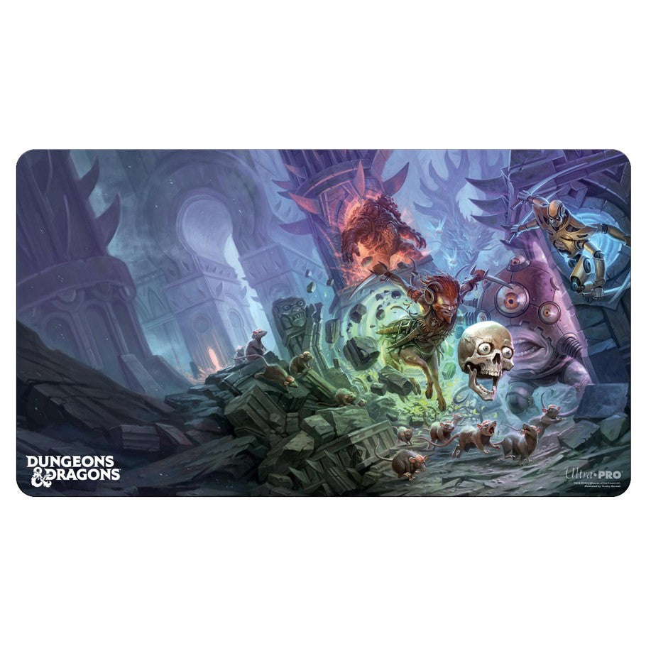Playmats featuring popular Dungeons & Dragons artwork. Made with a soft fabric top to reduce damage to cards during play and a non-slip rubber backing to keep the playmat from shifting during use, playmats enhance the gameplay experience. With dimensions of approximately 24 in. x 13.5 in., a playmat also makes an excellent oversize mousepad for home or office.