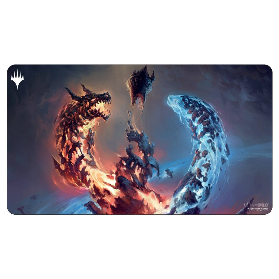 Playmats featuring popular Magic: The Gathering artwork. Made with a soft fabric top to reduce damage to cards during play and a non-slip rubber backing to keep the playmat from shifting during use, playmats enhance the gameplay experience. With dimensions of approximately 24 in. x 13.5 in., a playmat also makes an excellent oversize mousepad for home or office.