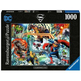Witness a weakened Man of Steel as he battles his greatest foes in our "Superman Collector's Edition" puzzle! Could this be the end of Superman? Using General Zod as bait, a band of DC Comics super enemies have joined forces and infiltrated the Fortress of Solitude! With the power-draining effects of a Red Sun, they're slowly crippling the Last Son of Krypton. Can he still thwart Darkseid's Omega Beams? Will a weakened Superman withstand the combined attacks of Bizarro, Brainiac, Mongol and Cyborg Superman, or will Lex Luthor's evil plan to finally rule Metropolis work? No x-ray vision needed to see! Part of our Collector's Edition puzzle series - a fun and immersive puzzling experience for any fan of the Superman comics, TV series or movies! This 1,000-piece jigsaw puzzle combines captivating imagery with clean-cut pieces and Ravensburger's perfect interlocking fit for a most pleasurable puzzling experience. Our puzzles are crafted with an exclusive, extra-thick backing along with our superior, linen-structured paper, so the printed image is vibrant, crisp, and glare-free. Create memorable moments with Ravensburger premium puzzles! Fun for ages 14 and up! Measures approximately 27 x 19.5 inches (70 x 50 cm) when completed.