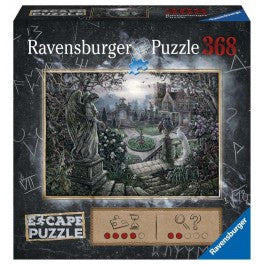 Find the symbol to guarantee everlasting love and save yourself from a lonely life as you solve our "Escape: Midnight in the Garden" puzzle! After years of a solitary existence, one where you've depended on animals to feed your constant vampire thirst, you've finally found true love! But you fear this love won't last, and tonight is the only night in a century to guarantee your happiness. Can you follow the clues, solve the hidden mysteries and find the symbol you need to escape a desolate future? Read the story, assemble the puzzle, solve the mysteries, then piece together your escape! (Instructions and solution envelope included.) This 368-piece jigsaw puzzle combines captivating imagery with clean-cut pieces and Ravensburger's perfect interlocking fit for a most pleasurable puzzling experience! Our puzzles are crafted with an exclusive, extra-thick cardboard backing along with our superior, linen-structured paper, so the printed image is vibrant, crisp, and glare-free. Create memorable moments with Ravensburger premium puzzles! Fun for ages 14 and up! Measures approximately 27 x 20 inches (70 x 50 cm) when completed.