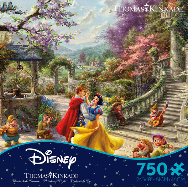 Thomas Kinkade Disney Collection is a group of paintings inspired by great moments from famous Walt Disney movies this 750 piece puzzle features Snow White dancing in a courtyard.