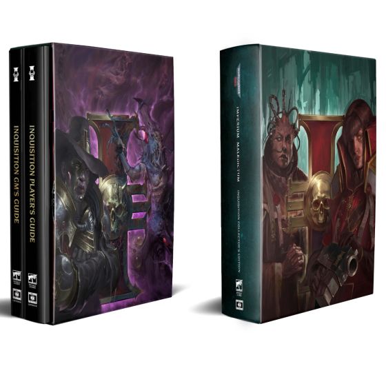 The Inquisition Guides bring the Holy Orders of the Emperor’s Inquisition to life at your gaming table. This two-book limited edition set for Warhammer 40,000 Roleplay: Imperium Maledictum gives you all the tools and content you need to craft unforgettable and perilous investigations for your players and their acolytes. The Inquisition Player’s Guide and Inquisition GM’s Guide within this edition have each been given a uniquely stunning cover treatment, contained within a handy and protective slipcase.