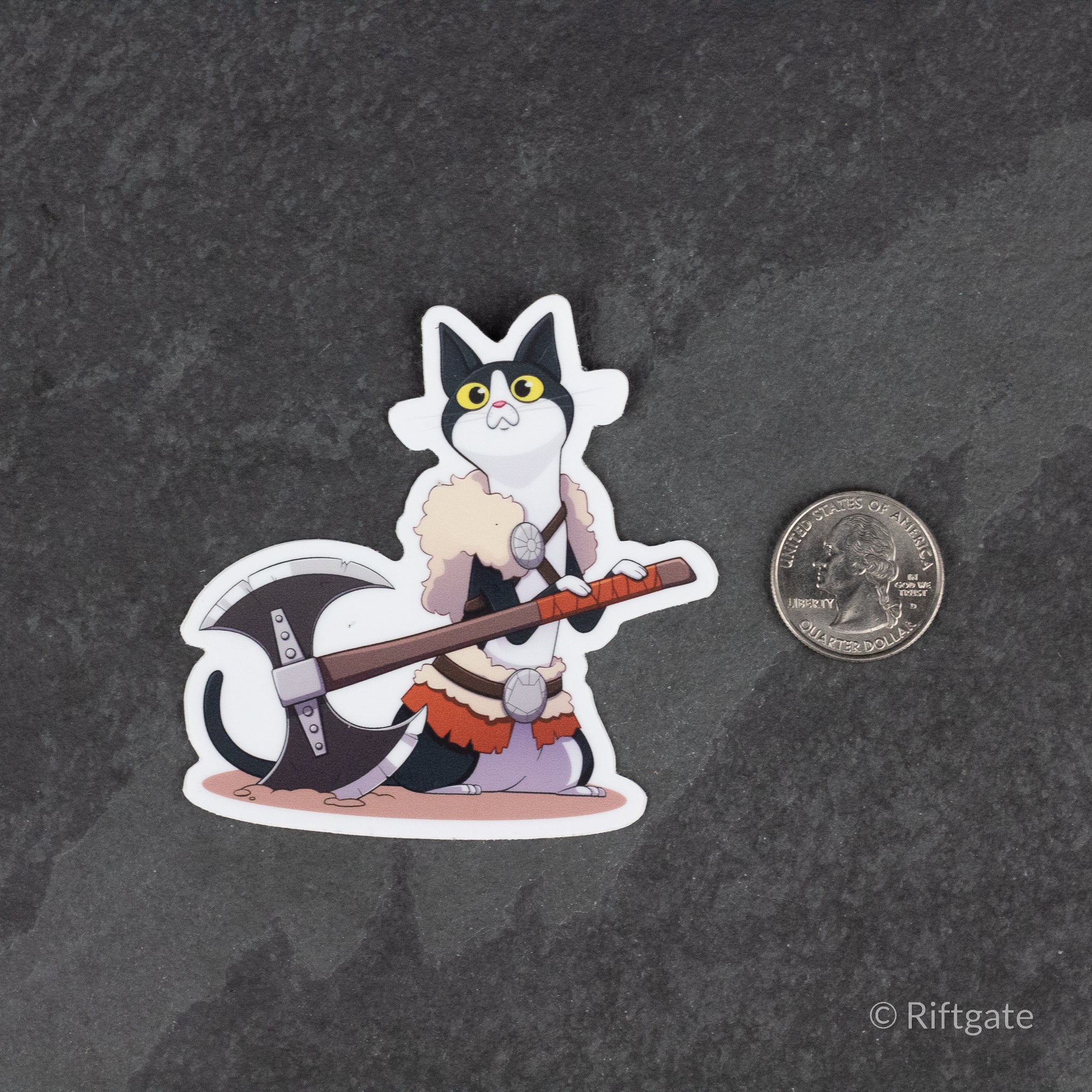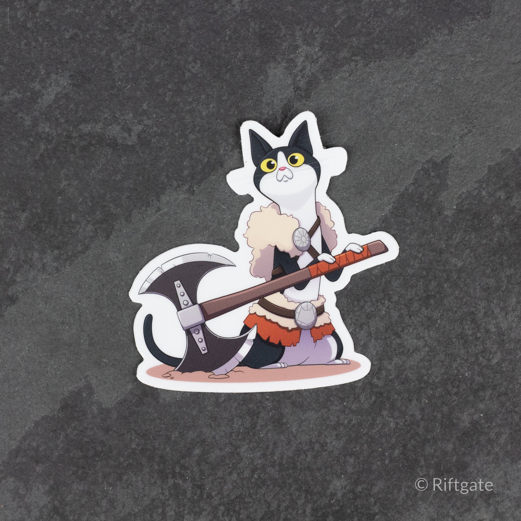 The Barbarian D&D Cat Sticker is great for laptops, journals, or water bottles. The perfect addition to any Dungeons and Dragons, Pathfinder, or TTRPG lover's collection.
