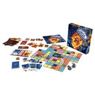 Two players face off in Castle Nightingale, with the ninja player trying to steal five relics before the samurai player can capture the three ninja thieves. The castle is comprised of an inaccessible garden surrounded by four double-sided floor boards, each showing two secret passage spaces and areas in five colors.