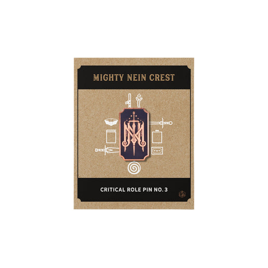 Our Mighty Nein crest pin has been redesigned with this new variant as a part of our Critical Role Pin series. Our Mighty Nein monogram was designed by Critter Crystal Sharp (@Malcassairo).