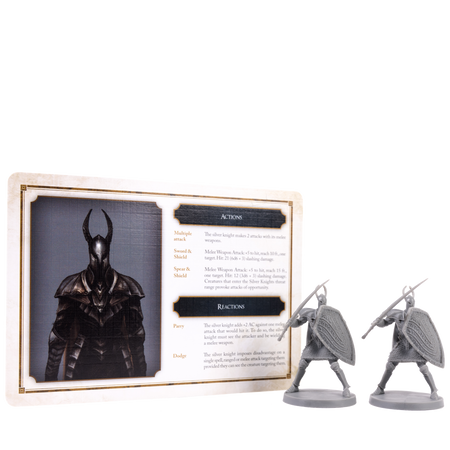 Inside this box is everything you need to add the steadfast Silver Knights and decrepit Hollow Soldiers to your campaigns, including 4 highly detailed minis and stat cards. All miniatures from this range are 5e-compatible, and ready to add to any roleplaying campaign right from the box.