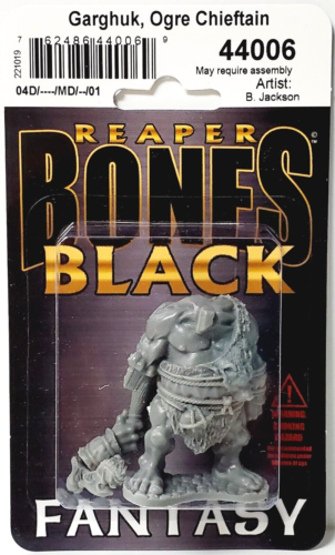 Garghuk, Ogre Chieftain by Bobby Jackson. All figures come unpainted. Some assembly required.