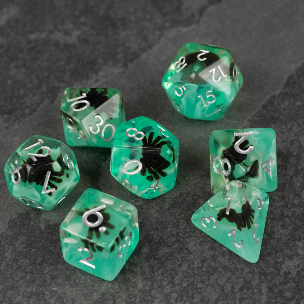 Black Spider Dice Set - Green