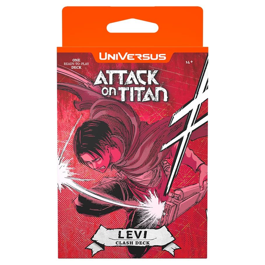 Expose new players to UniVersus through this pair of great introductory decks featuring Mikasa and Levi! These clash decks not only represent a great step into UniVersus for a new player just after they complete a demo, but the characters in these decks are also unique to this product.
