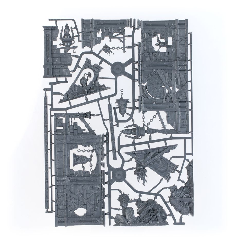– 4x Plastic push-fit pieces of terrain: This terrain set shows fractured Sigmarite architecture that has been desecrated with the icons and aesthetics of the twisted Skaven. It is also ideal for playing out the Spearhead games featured in the Spearhead: Fire and Jade book.
